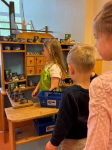 Heute wurde unser Gewinn von Combi endlich eingeweiht. Viele, viele Einkaufsutensilien & Körbchen wurden benutzt um im Einkaufsladen einzukaufen.